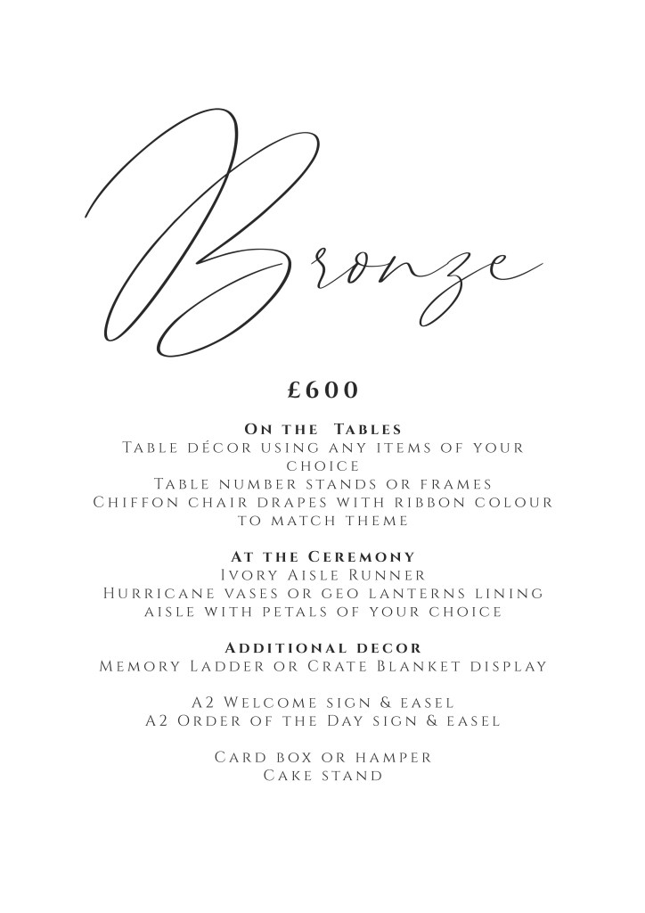 We know that planning your event can be stressful, so let us do the hard work! These will give you everything to make sure your wedding looks absolutely incredible. To give you the opportunity to personalise your day we give you the freedom to select items from our huge product list.